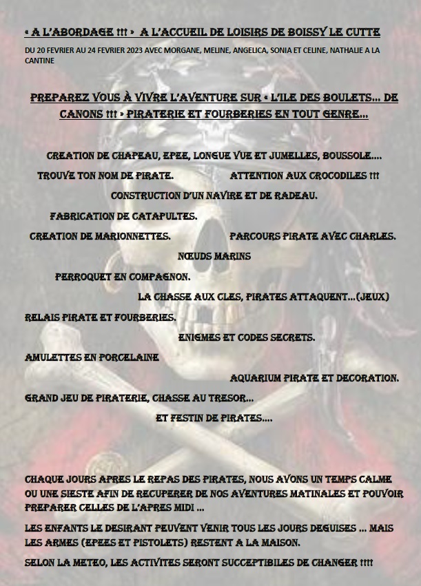 Le Centre de Loisirs de Boissy le Cutté vous présente son planning pour les vacances scolaires de Février.