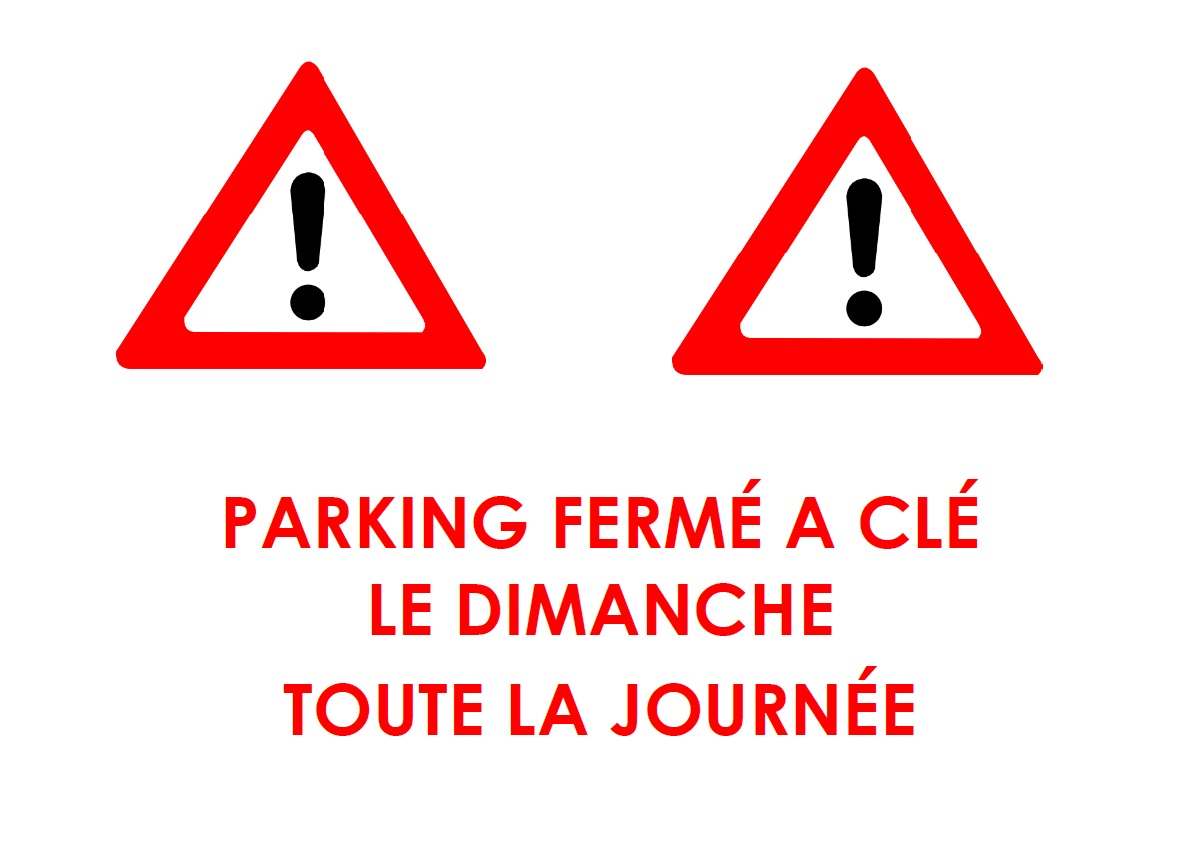 Merci de ne pas laisser vos véhicules stationnés sur ce parking pendant sa fermeture. Ces panneaux seront disposés à l'entrée du parking.